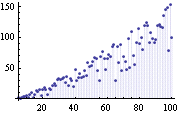 Вычисление порядка групп, порожденных двумя случайными перестановками, с растущим количеством переставляемых элементов у одной из них. Часто порожденная группа является симметричной или знакопеременной группой на множестве точек, изменяемых порождающими перестановками.