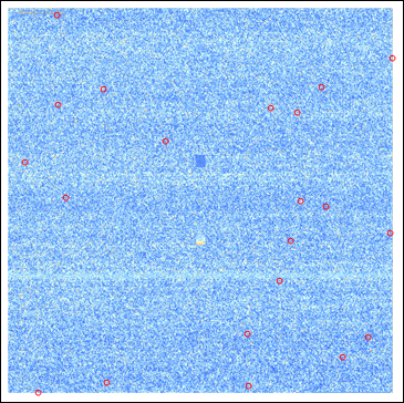 {data, outliers} = Import["http://www.affymetrix.com/support/downloads/demo_data/Demo_\ Data_Cotton_AGCC.zip", \ {"Demo_Data_Cotton_AGCC\\af1c837-3-17_1_3_11-261006.CEL", {"Data", "Outliers"}}]; Show[ArrayPlot[Log@data, ColorFunction -> "LightTemperatureMap"], Graphics[{Red, Circle[#, 5.0] & /@ outliers}]]