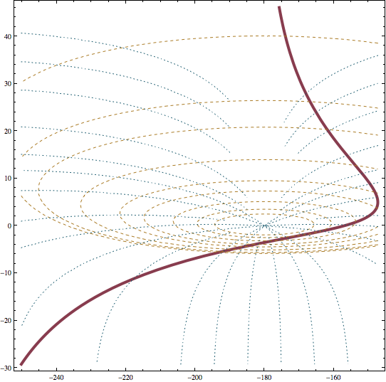 NicholsPlot[(4 (s + 0.5))/(s^2 (s^2 + 2 s + 4)), Frame -> True, PlotStyle -> Directive[AbsoluteThickness[4], ColorData[24, 9]], NicholsGridLines -> {{#, Directive[Dashed, Darker@ColorData[24, 2]]} & /@ {1.01, 1.05, 1.1, 1.25, 1.5, 1.75, 2.25, 3, 4}, {#, Directive[Dotted, Darker@ColorData[24, 6]]} & /@ ({1/2, 1, 2, 5, 10, 15, 25, 50, 75, -1/2, -1, -2, -5, -10, -15, -25, -50, -75,} Degree)}]