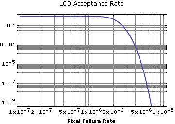 Жидко-кристалический дисплей признаётся пригодным, если у него имеется не более чем 15 неисправных пикселей. В этом примере расчитывается максимально допустимый уровень получения неисправных пикселей, необходимый, чтобы не менее 90% дисплеев размером пикселей проходили контроль качества.