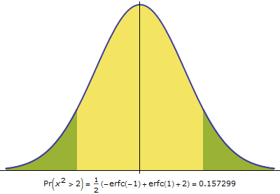 {p1, p2, p3} = {Plot[PDF[NormalDistribution[0, 1], x], {x, -3, 3}, Filling -> Axis, PlotStyle -> Thick, FillingStyle -> Hue[.15, .6, .95]], Plot[PDF[NormalDistribution[0, 1], x], {x, Sqrt[2], 3}, AxesOrigin -> {0, 0}, Filling -> Axis, PlotStyle -> Thick, FillingStyle -> Hue[.2, .7, .7]], Plot[PDF[NormalDistribution[0, 1], x], {x, -3, -Sqrt[2]}, AxesOrigin -> {0, 0}, Filling -> Axis, PlotStyle -> Thick, FillingStyle -> Hue[.2, .7, .7]]};