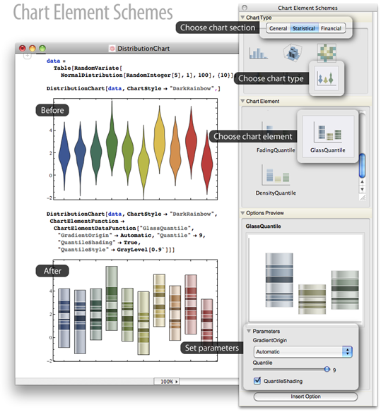 Seleccione a partir de una biblioteca de estilos de gráfico parametrizados.