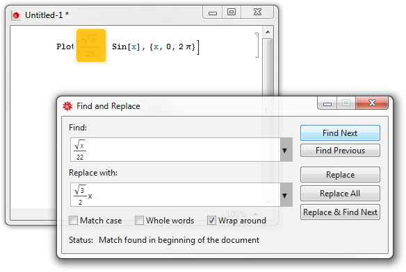 El diálogo Buscar y reemplazar puede encontrar entrada tipográfica arbitraria y reemplazarla con otra entrada tipográfica. Buscar y reemplzar funciona, incluso, en textos dentro de gráficos.