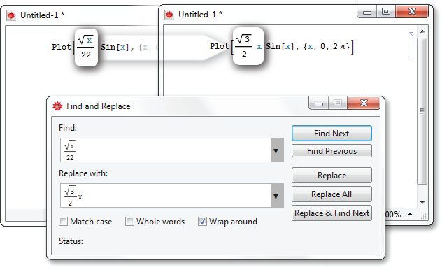 Find and Replace 다이얼로그에서 모든 유형의 타입 셋 입력을 검색하고 그것을 다른 타입 셋 입력으로 대체할수 있습니다. Find and Replace는 그래픽 안에 있는 텍스트에서도 동작합니다.