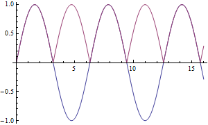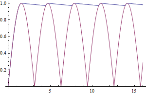 Когда vr растёт, vo[t]=vr[t]; то заряжает ёмкость и питает током нагрузку. Когда vr начинает уменьшаться (vr'[t]<0), ёмкость отдаёт накопленный в ней заряд, и выходное напряжение удовлетворяет уравнениюvo'[t]=vo[t]/cr.