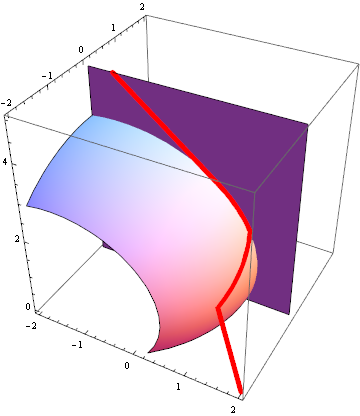 In higher dimensions, sliding mode is possible on more than one discontinuity surface at once. This happens for two discontinuity surfaces in 3D defined by the surface of a sphere and the plane , with the vector field given by .