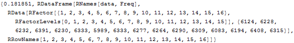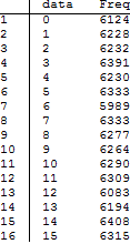 Сначала загружаем и устанавливаем среду выполнения R и генерируем данные случайным образом. Находим частоты встречаемости элементов и возвращаем их в виде фрейма данных, который можно отобразить в виде таблицы.