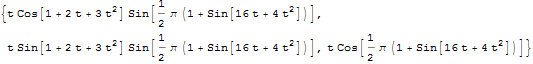 The following is a curve expressed in spherical coordinates. It starts at the origin and moves to the surface of the unit sphere.