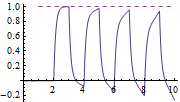 Когда входной сигнал претерпевает скачок, он повторяется с промежутком, равным временной задержке.