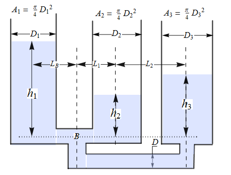 Скорость потока жидкости зависит от разностей давлений и от геометрии соединительных труб.