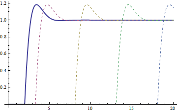 remotesys = SystemsModelSeriesConnect[actuator, SystemsModelSeriesConnect[fan, sensing]]; comsys = SystemsModelSeriesConnect[ SystemsModelSeriesConnect[com, remotesys], com]; y1 = OutputResponse[ SystemsModelFeedbackConnect[ SystemsModelSeriesConnect[controller, comsys /. \[Delta] -> 1/5]], UnitStep[t - 2], {t, 0, 10}]; Plot[%, {t, 0, 10}, PlotRange -> All]