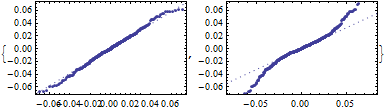 {QuantilePlot[goog, edist1], QuantilePlot[goog, edist2]}