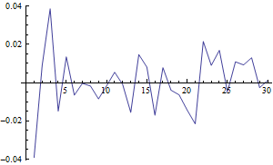 goog = Differences[ Log[FinancialData["GOOG", {{2008, 3, 10}, {2010, 3, 15}, "Day"}, "Value"]]];
