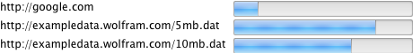 urls = {"http://google.com", "http://exampledata.wolfram.com/5mb.dat", "http://exampledata.wolfram.com/10mb.dat"}; progressBars[_] := 0.; progFunction[asyncObj_, "progress", {dlnow_, dltotal_, _, _}] := Quiet[progressBars[asyncObj] = dlnow/dltotal]