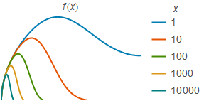 functions = Plot[Table[Sqrt[Sin[t]] Exp[-x Sin[t]^4], {x, xlist}] // Evaluate, {t, 0, Pi/2}, PlotStyle -> (Directive[Thick, #] & /@ ColorData[68, "ColorList"]), PlotLegends -> LineLegend[{1, 10, 100, 1000, 10000}, LegendLabel -> x, LabelStyle -> labelstyle], PlotLabel -> Style[f[x], labelstyle], Evaluate@styleoptions]