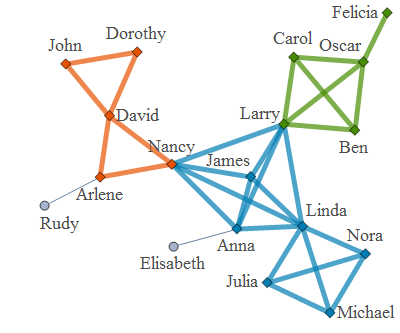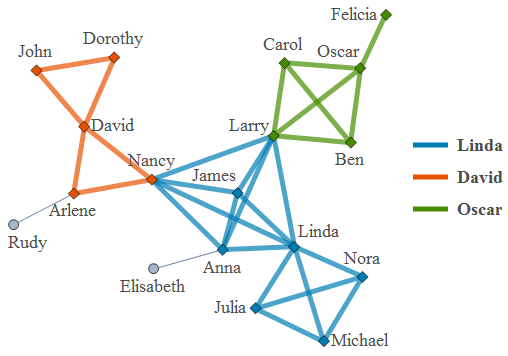 Highlight the connections to David, Linda, and Oscar in different colors.