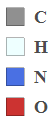 elements = ChemicalData["Caffeine", "ElementTypes"]; elementLegend = SwatchLegend[ElementData[#, "IconColor"] & /@ elements, elements, LegendMarkerSize -> 20, LabelStyle -> {Bold, GrayLevel[0.3], 18}]