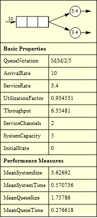 QueueProperties[QueueingProcess[10, 3.4, 2, 5]]