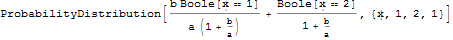 StationaryDistribution[ContinuousMarkovProcess[1, {{-a, a}, {b, -b}}]]