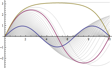 Show[Plot[Evaluate@Table[psol[a][t], {a, 0, 2, .05}], {t, 0, 10}, PlotRange -> All, PlotPoints -> 500, PlotStyle -> Lighter[Gray, 0.5]], Plot[Evaluate[psol[s][t] /. val], {t, 0, 10}, PlotStyle -> Thick], ImageSize -> Medium]