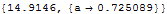 lmin = FindMinimum[\[Alpha][a][10] /. psol, {a, 0.72}, AccuracyGoal -> 7]