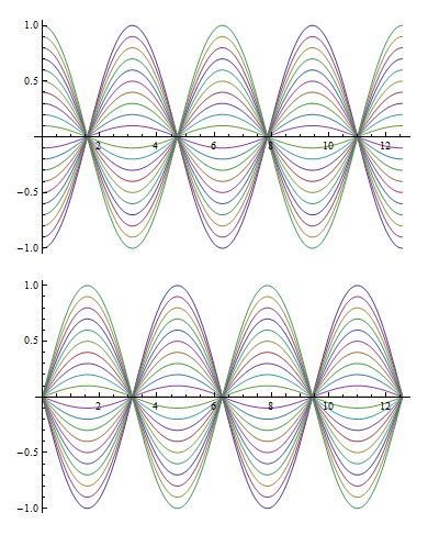 freqplot = {x''[t] == -Framed[\[Omega]] x[t], Plot[Evaluate@ Table[pfun[\[Omega], 1, 0, 10][t], {\[Omega], .5, 3, .5}], {t, 0, 4 \[Pi]}, Ticks -> None]}; initvalplot = {x[0] == Framed[x0], Plot[Evaluate@Table[pfun[1, x0, 0, 10][t], {x0, -1, 1, .1}], {t, 0, 4 \[Pi]}, Ticks -> None]}; initderplot = {x'[0] == Framed[x1], Plot[Evaluate@Table[pfun[1, 0, x1, 10][t], {x1, -1, 1, .1}], {t, 0, 4 \[Pi]}, Ticks -> None]}; wpplot = {WorkingPrecision -> Framed[wp], ListLogPlot[ Table[{wp, Abs[pfun[1, 1, 0, wp][4 \[Pi]] - 1]}, {wp, 16, 60}], AxesLabel -> {wp, "Error"}, Ticks -> None]};