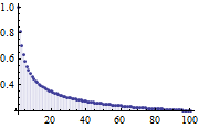 ListPlot[Table[ CorrelationFunction[FractionalBrownianMotionProcess[h] /. pars, 1, j], {j, 100}], Filling -> Axis, PlotRange -> All]