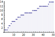 RandomFunction[BinomialProcess[1/3], {0, 50}]; ListPlot[%, Filling -> Axis]