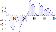 ListPlot[RandomFunction[ARProcess[{0.7}, 1], {0, 50}], Filling -> Axis, AxesOrigin -> {0, 0}]