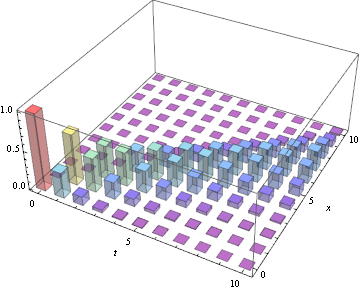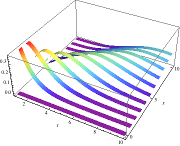 given by its SliceDistribution. The slice distribution is plotted for a range of time values. | In[1]:= | X |