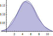 Show[Plot[Evaluate[PDF[proc[5], x]], {x, -1, 11}, Filling -> Axis], SmoothHistogram[data["SliceData", 5], Filling -> Axis], PlotRange -> {{-1, 11}, All}]