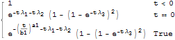 \[ScriptCapitalR]car = ReliabilityDistribution[ wheels \[And] engine \[And] transmission \[And] (brake1 \[Or] brake2), {{wheels, ExponentialDistribution[Subscript[\[Lambda], 1]]}, {engine, WeibullDistribution[a1, b1]}, {transmission, ExponentialDistribution[Subscript[\[Lambda], 2]]}, {brake1, ExponentialDistribution[Subscript[\[Lambda], 3]]}, {brake2, ExponentialDistribution[Subscript[\[Lambda], 3]]}}];