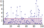 ListPlot[{RandomVariate[\[ScriptCapitalR]car /. vals, 100], {{0, mttf}, {100, mttf}}}, Joined -> {False, True}, Filling -> Axis, AxesOrigin -> {0, 0}]