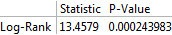 Взвешенный логранговый критерий LogRankTest по Геену подтверждает визуальное впечатление о существенном различии в кривых интенсивности отказов.
