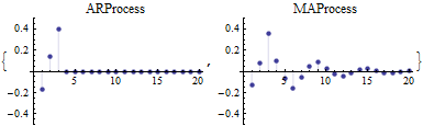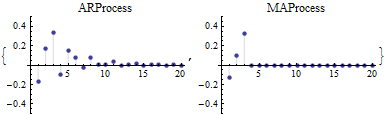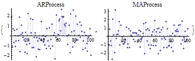 ar = ARProcess[{-.2, .2, .4}, 1]; ma = MAProcess[{-.2, .2, .4}, 1];