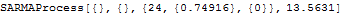 eproc = EstimatedProcess[data[[All, 2]], SARMAProcess[{}, {}, {24, {c}, {d}}, v], ProcessEstimator -> "MethodOfMoments"]
