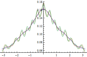 Plot[Evaluate@ Table[PowerSpectralDensity[data, \[Omega], i], {i, 5, 20, 5}], {\[Omega], -\[Pi], \[Pi]}, PlotRange -> All, ImageSize -> 300]