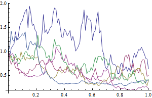 Визуализация некоторых траекторий, построенных с помощью аппроксимационной схемы Рунге-Кутта, с коррекцией артифакта получения отрицательной процентной ставки, возникающего за счёт использования приближений.
