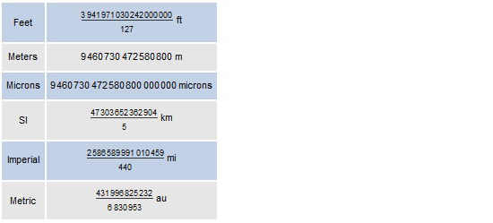 Преобразование светового года в различные единицы длины и различные системы единиц измерений.