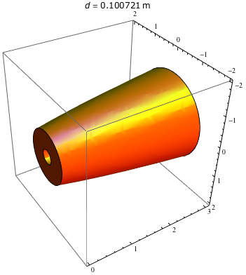 Calculate the diameter needed to empty a conical tank with a known coefficient of discharge.