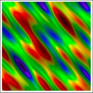 Table[Evaluate[Sum[30 Sin[RandomReal[4, 2].{x, y}], {5}]], {x, 0,