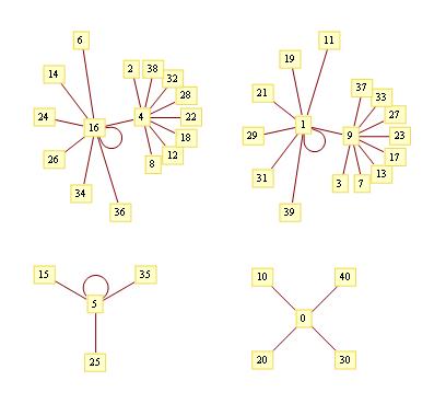 GraphPlot[Table[i -> Mod[i^2, 20], {i, 40}], VertexLabeling -> True]