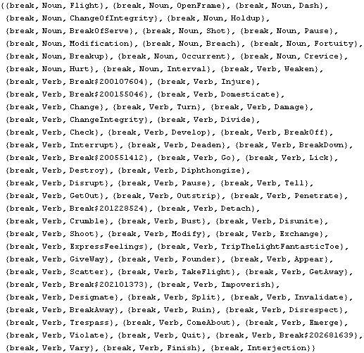 Mathematica 6 has built-in computational linguistics for words, here indicating possible meanings for "break" by giving unique sense tags.