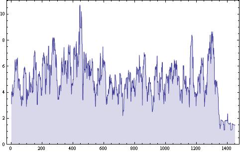 With its WordData capabilities, Mathematica 6 makes immediate forms of semantic analysis possible. Here is the moving average of the number of word senses in the U.S. Declaration of Independence, with the signature block at the end visibly distinct.