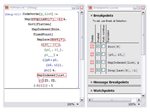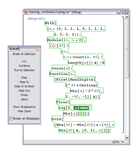 Mathematica 6 adds a powerful integrated source-level debugger that allows immediate inspection and control of Mathematica programs. Mathematica's symbolic architecture—combined with its notebook document paradigm—makes possible a unique level of flexibility in analyzing and validating programs, shortening still further the cycle for Mathematica application development.