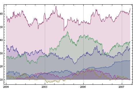 In[1]:= | DateListPlot[ FinancialData[#, "Jan. 1, 2004"] & /@ FinancialData["NYSE:AA*", "Lookup"], Filling -> Axis, Joined -> True] |