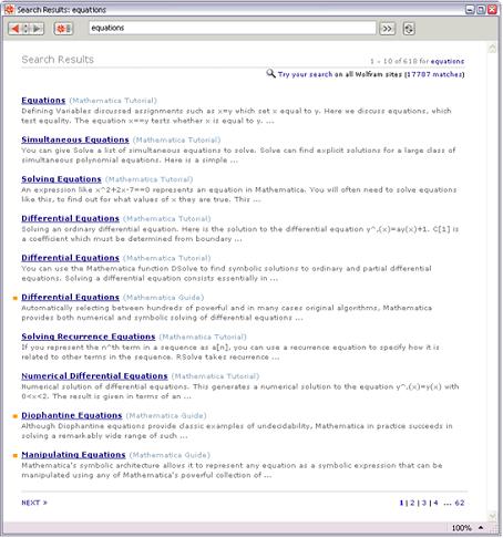 Mathematica 6 allows immediate searching of all documentation both in-product and on the web.