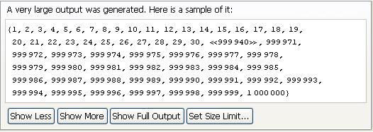 Mathematica 6 automatically intercepts overly long outputs, and provides a controlled interface for viewing them.