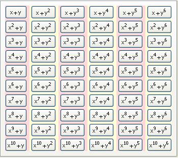 In[1]:= | Panel[Grid[Table[Button[x^i + y^j], {i, 10}, {j, 6}],