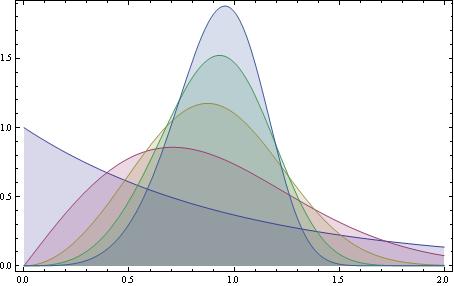 Mathematica 6 has built-in support for 36 continuous and discrete statistical distributions. This plots the Weibull distribution for several parameter values.